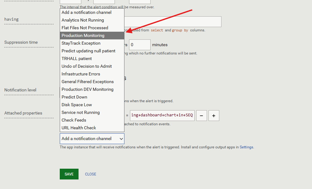 - Set the Notification Channel to Production Monitoring so alerts route to Support Freshdesk.